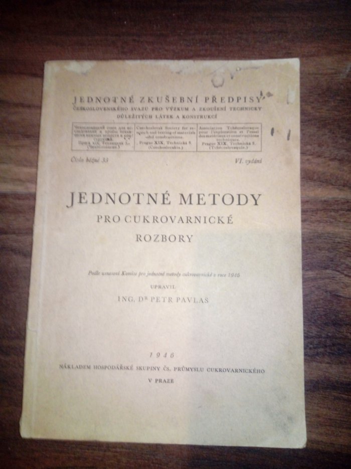 Podle usnesení Komise pro jednotné metody cukrovarnické v roce 1946 upravil Ing. Dr. Petr Pavlas