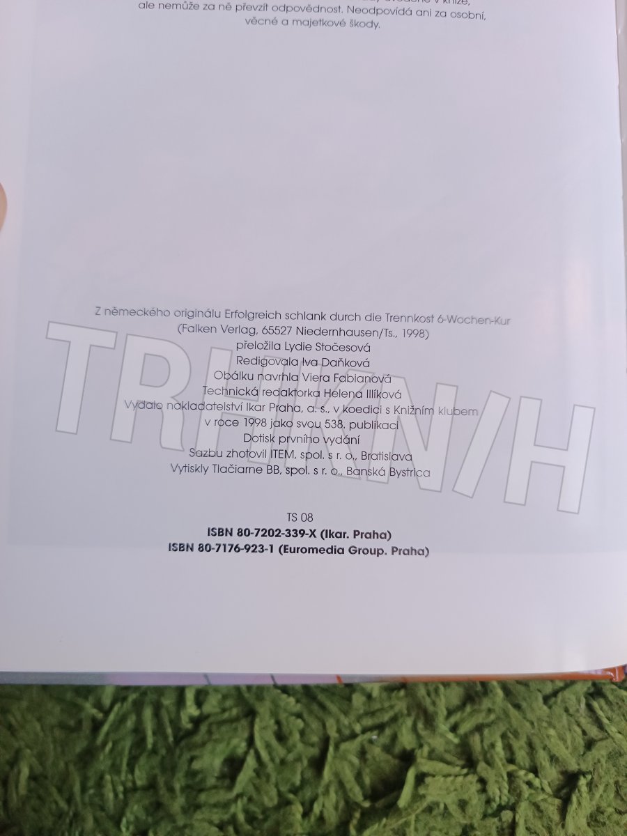 Hubneme s dělenou stravou : kúra na 6 týdnů Autor: Summ, Ursula Vydání: 1 Místo vydání: Praha Počet stran: 104 s. Rok vydání: 1998 Vazba: vázaná Stav: dobrý/velmi dobrý Nakladatel: Ikar Kategorie: Zdraví Edice, série: kniha Vytvořeno: 2021-05-24 17:44:39