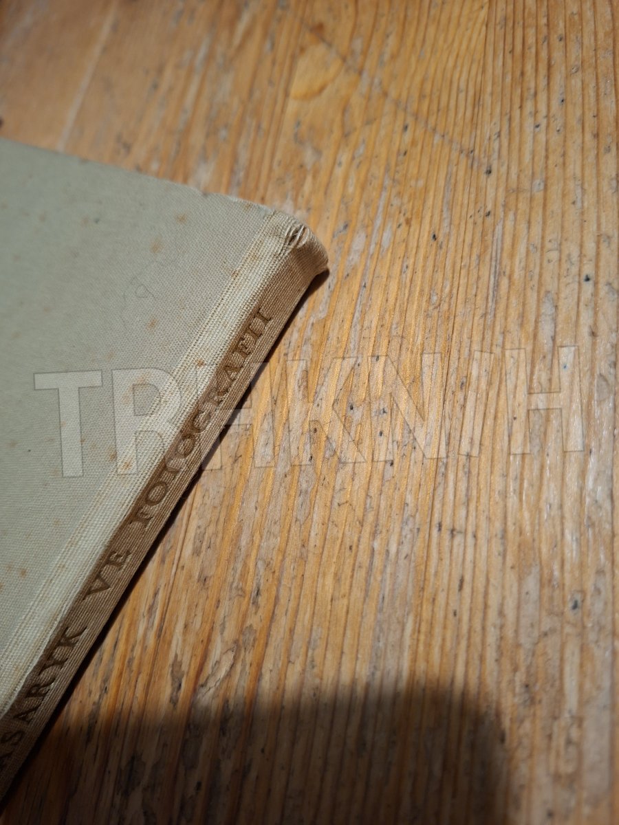 látkou potažené desky vyšisované, ohmatané, na hranách trochu ošoupané