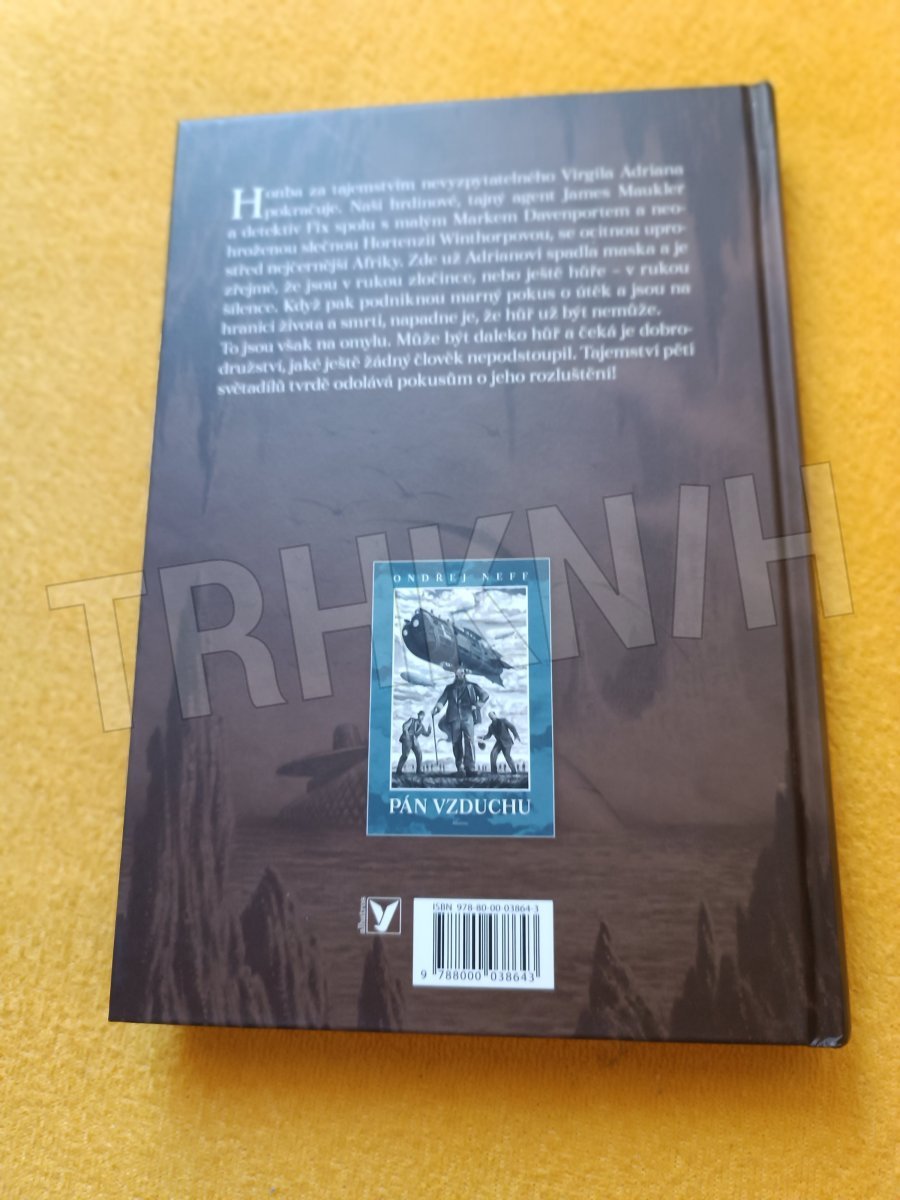 Honba za tajemstvím nevyzpytatelného Virgila Adriana pokračuje. Naši hrdinové, tajný agent James Maukler a detektiv Fix spolu s malým Markem Davenportem a neohroženou slečnou Hortenzií Winthorpovou, se ocitnou uprostřed nejčernější Afriky. Zde už Adrianovi spadla maska a je zřejmé, že jsou v rukou zločince, nebo ještě hůře – v rukou šílence. Když pak podniknou marný pokus o útěk a jsou na hranici života a smrti, napadne je, že hůř už být nemůže. To jsou však na omylu. Může být daleko hůř a čeká je dobrodružství, jaké ještě žádný člověk nepodstoupil. Tajemství pěti světadílů tvrdě odolává pokusům o jeho rozluštění! Druhou knihu z velkolepé trilogie, zamýšlené jako pocta dílu Julese Verna, doprovodil svými ilustracemi Lubomír Kupčík