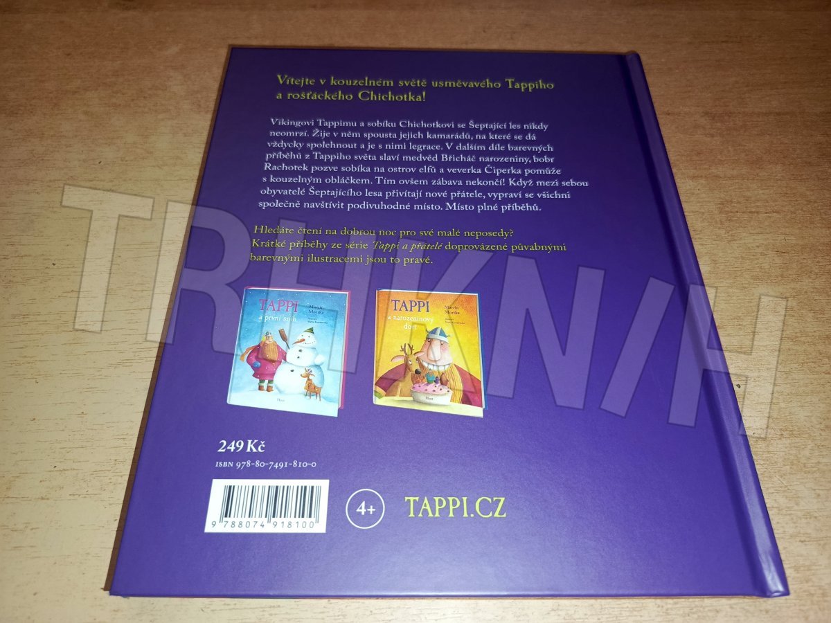 Vítejte v kouzelném světě usměvavého Tappiho a rošťáckého Chichotka! Vikingovi Tappimu a sobíku Chichotkovi se Šeptající les nikdy neomrzí. Žije v něm spousta jejich kamarádů, na které se dá vždycky spolehnout a je s nimi legrace. V dalším díle barevných příběhů z Tappiho světa slaví medvěd Břicháč narozeniny, bobr Rachotek pozve sobíka na ostrov elfů a veverka Čiperka pomůže s kouzelným obláčkem. Tím ovšem zábava nekončí! Když mezi sebou obyvatelé Šeptajícího lesa přivítají nové přátele, vypraví se všichni společně navštívit podivuhodné místo. Místo plné příběhů. Hledáte čtení na dobrou noc pro své malé neposedy? Krátké příběhy ze série Tappi a přátelé doprovázené půvabnými barevnými ilustracemi jsou to pravé. Pro čtenáře od čtyř let.