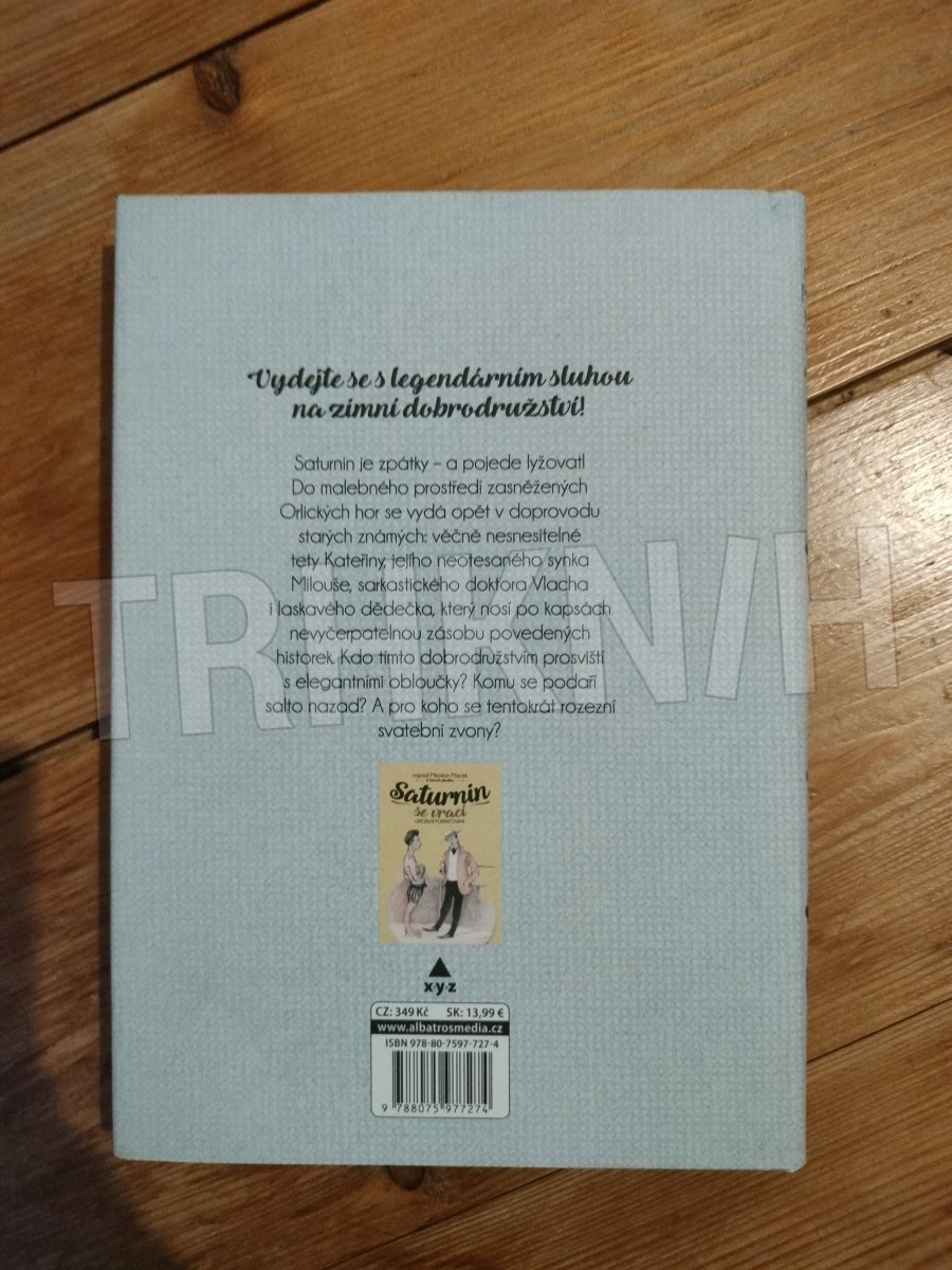 Legendární sluha Saturnin je zpátky – a pojede lyžovat! Do malebného prostředí zasněžených Orlických hor se vydá opět v doprovodu starých známých: věčně nesnesitelné tety Kateřiny, jejího neotesaného synka Milouše, sarkastického doktora Vlacha i laskavého dědečka, který nosí po kapsách nevyčerpatelnou zásobu povedených historek. Kdo tímto dobrodružstvím prosviští s elegantními obloučky? Komu se podaří salto nazad? A pro koho se tentokrát rozezní svatební zvony?