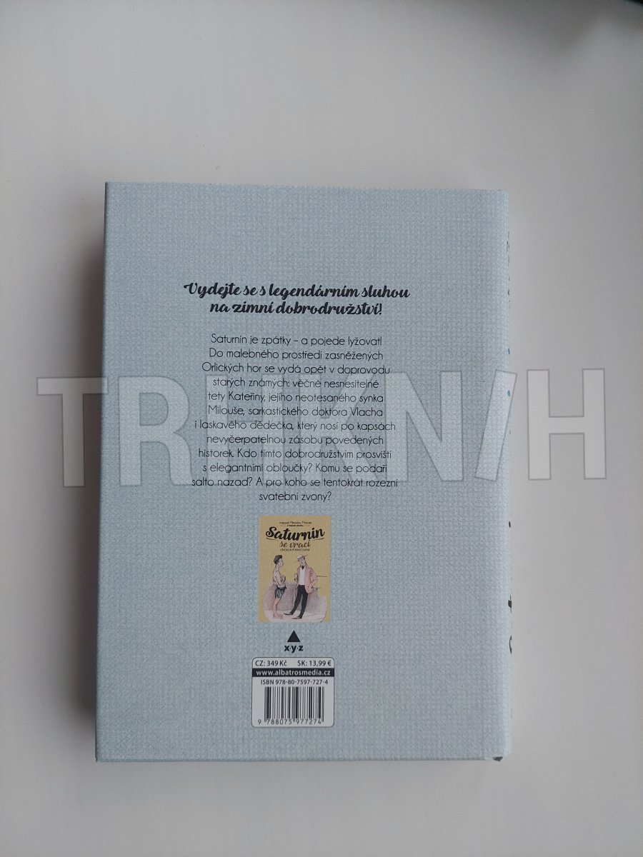 Legendární sluha Saturnin je zpátky – a pojede lyžovat! Do malebného prostředí zasněžených Orlických hor se vydá opět v doprovodu starých známých: věčně nesnesitelné tety Kateřiny, jejího neotesaného synka Milouše, sarkastického doktora Vlacha i laskavého dědečka, který nosí po kapsách nevyčerpatelnou zásobu povedených historek. Kdo tímto dobrodružstvím prosviští s elegantními obloučky? Komu se podaří salto nazad? A pro koho se tentokrát rozezní svatební zvony?