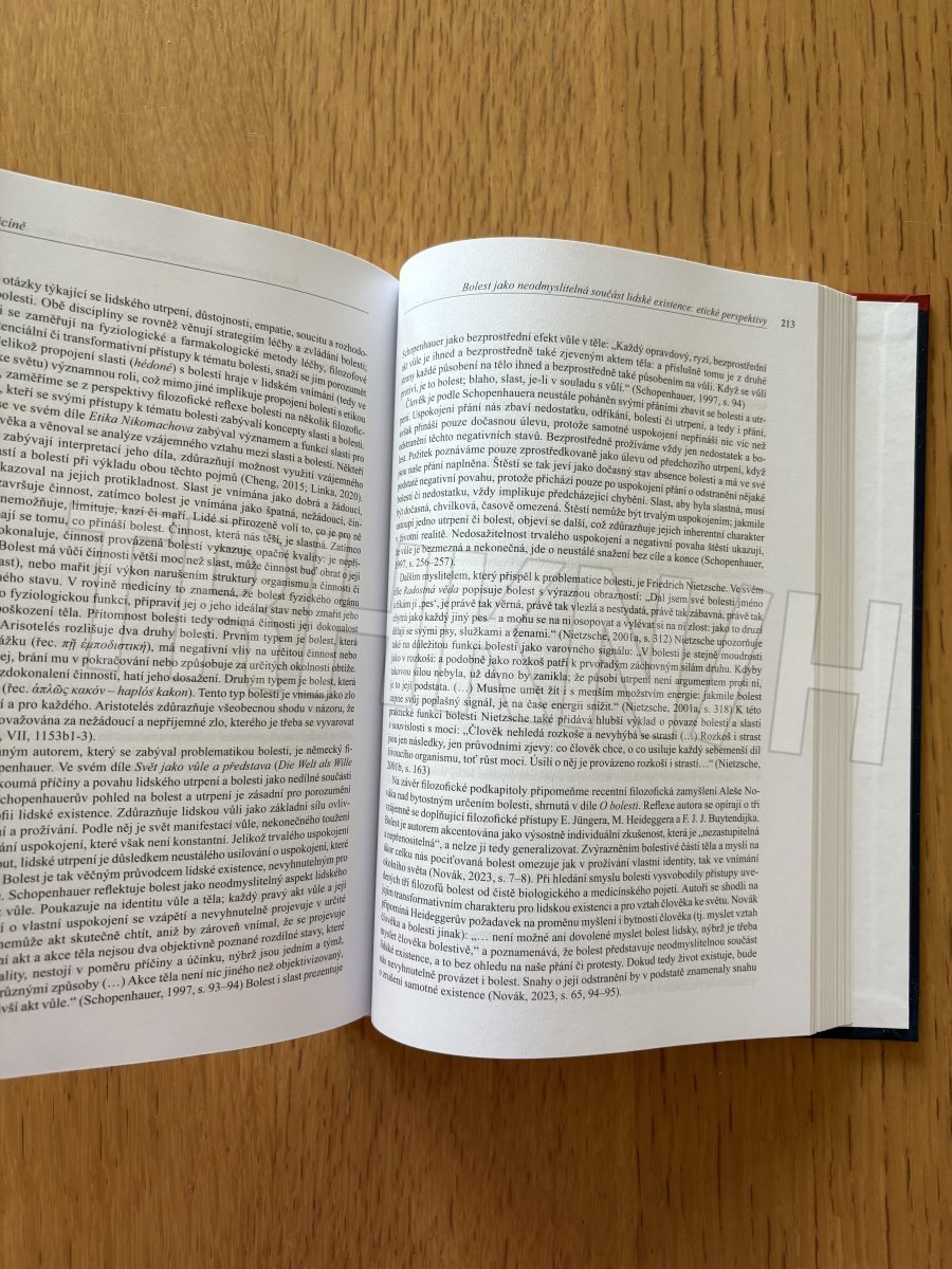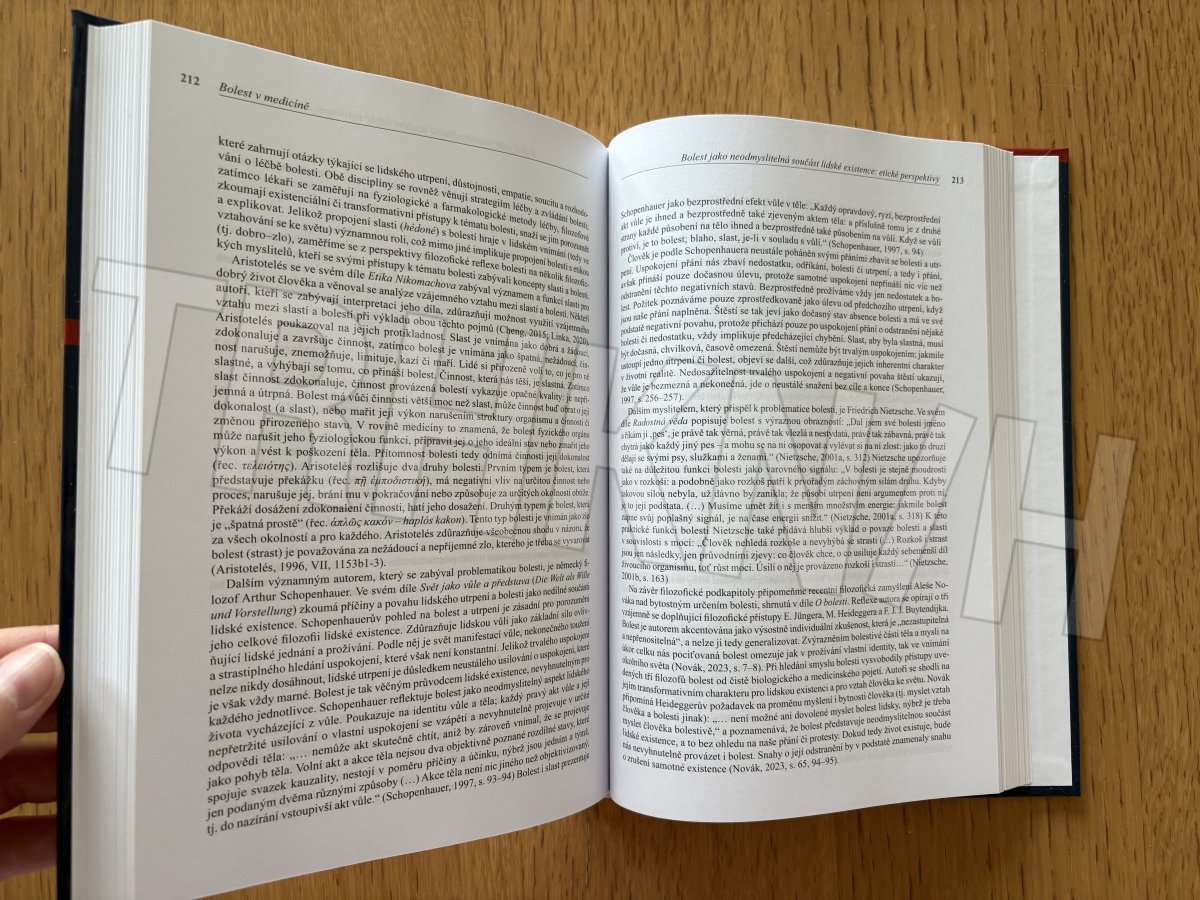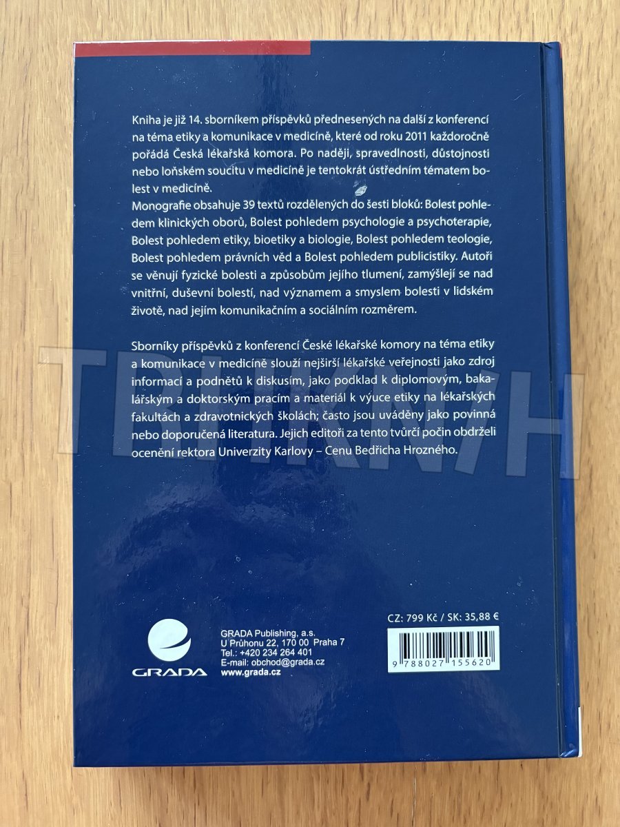 Kniha je již 14. sborníkem příspěvků přednesených na další z konferencí na téma etiky a komunikace v medicíně, které od roku 2011 každoročně pořádá Česká lékařská komora. Čtrnáctá konference v prosinci 2024 byla zaměřena na bolest v medicíně. Monografie obsahuje 39 textů od 46 autorů. Jednotlivé příspěvky jsou rozděleny do šesti bloků: Bolest pohledem klinických oborů, Bolest pohledem psychologie a psychoterapie, Bolest pohledem etiky, bioetiky a biologie, Bolest pohledem teologie, Bolest pohledem právních věd a Bolest pohledem publicistiky. Ústřední téma – bolest v medicíně a zejména způsoby tlumení fyzické bolesti – si vyžádalo značné zastoupení autorů z klinických oborů. Ostatní autoři se zamysleli také nad existencí vnitřní, duševní bolesti, nad významem a smyslem bolesti v lidském životě, nad jejím komunikačním a sociálním rozměrem. Série monografií a návazných konferencí na téma etiky a komunikace v medicíně nemá u nás ani ve světě obdoby z hlediska rozsáhlosti a kontinuity takto orientovaných vzdělávacích aktivit pro lékařskou i širší veřejnost. Sborníky se stávají zdrojem informací, podnětů k diskusím, podkladem k diplomovým, bakalářským a doktorským pracím a materiálem k výuce etiky na lékařských fakultách a zdravotnických školách; často jsou uváděny jako povinná nebo doporučená literatura. Zásadně přispívají ke kultivaci nejširší lékařské veřejnosti a jejich editoři za ně obdrželi ocenění rektora Univerzity Karlovy (Cenu Bedřicha Hrozného) za nejlepší tvůrčí počin roku 2017.