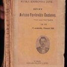 plátěná fialovová vazba,na hřbetě černý štítek se zlatými písmeny, Spisy A.P.Čechova díl VII.