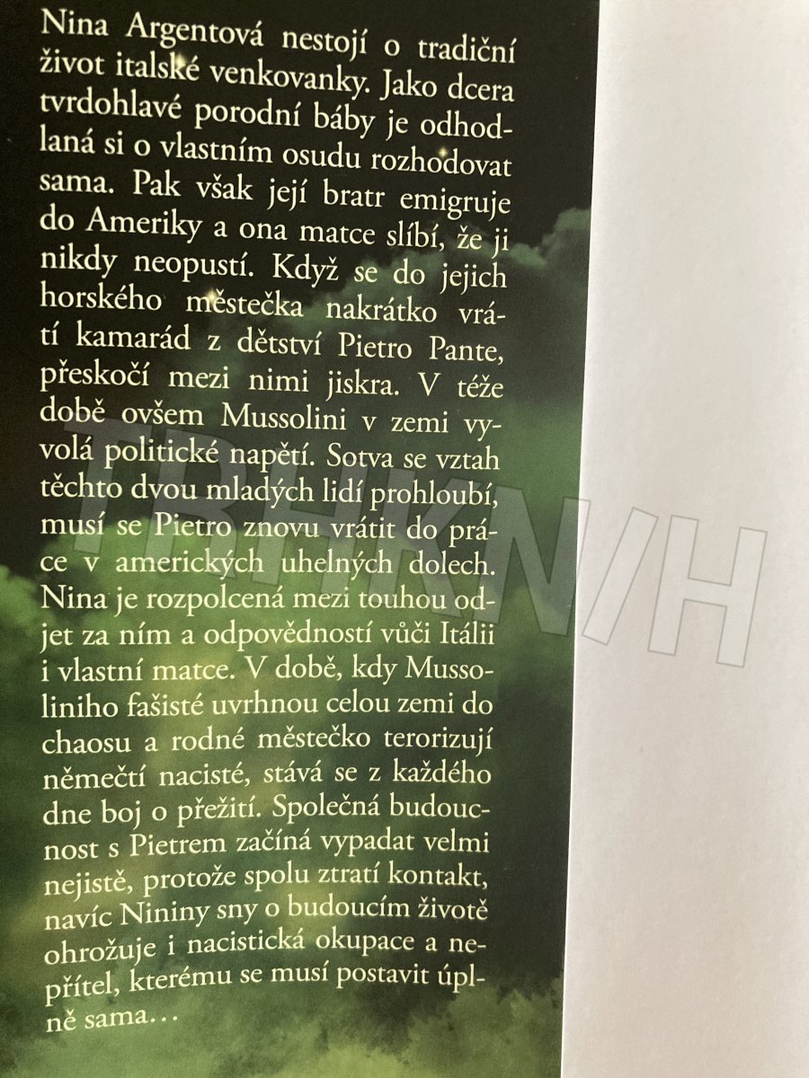 Nina Argentová nestojí o tradiční život italské venkovanky. Jako dcera tvrdohlavé porodní báby je odhodlaná si o vlastním osudu rozhodovat sama. Pak však její bratr emigruje do Ameriky a ona matce slíbí, že ji nikdy neopustí. Když se do jejich horského městečka nakrátko vrátí kamarád z dětství Pietro Pante, přeskočí mezi nimi jiskra. V téže době ovšem Mussolini v zemi vyvolá politické napětí. Sotva se vztah obou mladých lidí prohloubí, musí se Pietro znovu vrátit do práce v amerických uhelných dolech. Nina je rozpolcená mezi touhou odjet za ním a mezi odpovědností vůči Itálii i vlastní matce.