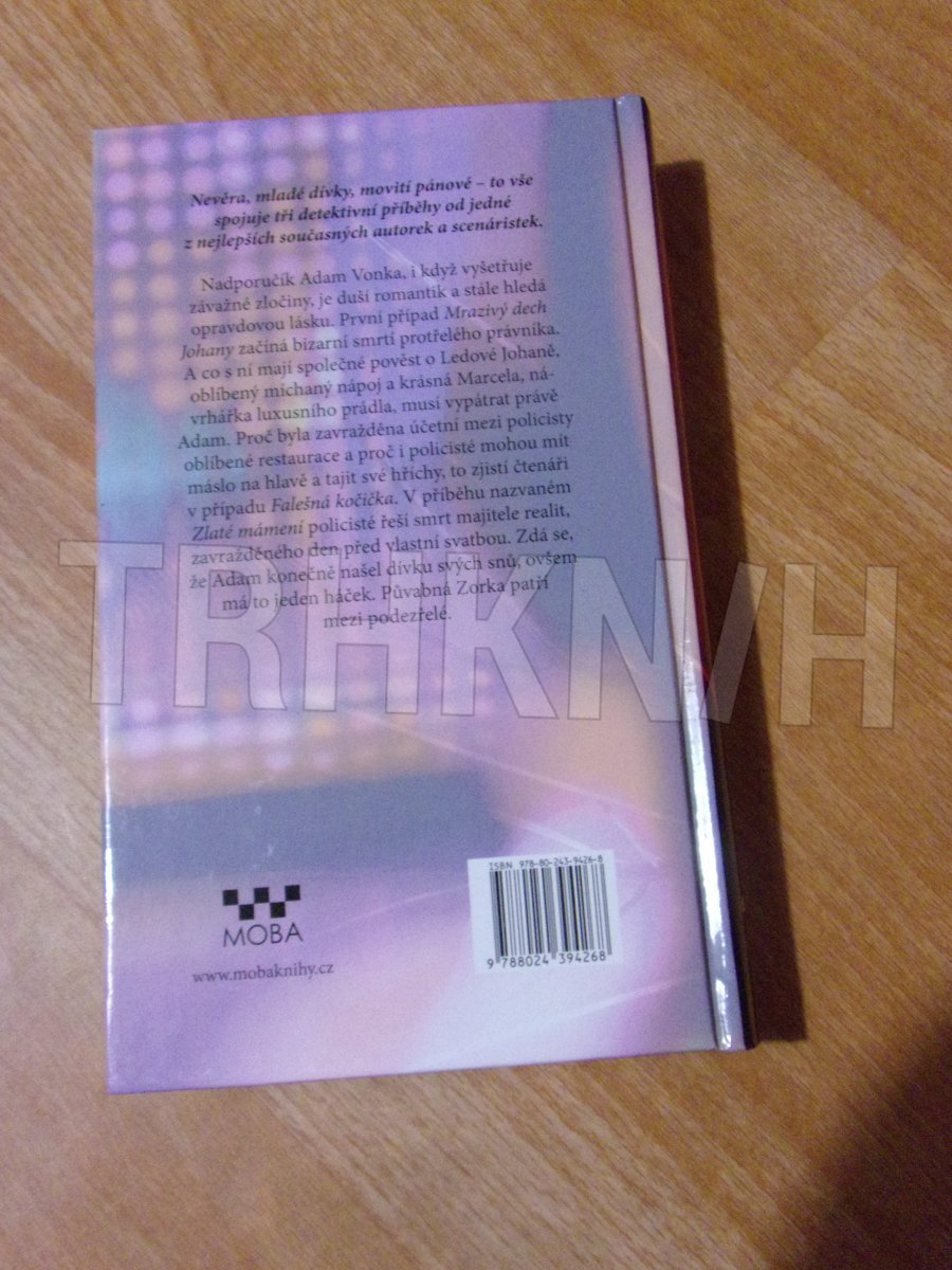 Nevěra, mladé dívky a movití pánové, to vše spojuje tři detektivní příběhy odehrávající se v Brně. Mrazivý dech Johany začíná bizarní smrtí protřelého právníka. A co s ní mají společného pověst o Ledové Johaně, oblíbený míchaný nápoj a krásná Marcela, návrhářka luxusního prádla, musí vypátrat nadporučík Adam Vonka. Falešná kočička dá odpověď na to, proč byla zavražděna účetní mezi policisty oblíbené restaurace a proč i policisté mohou mít máslo na hlavě a tajit své hříchy. Ve Zlatém mámení policisté řeší smrt majitele realit, zavražděného den před vlastní svatbou