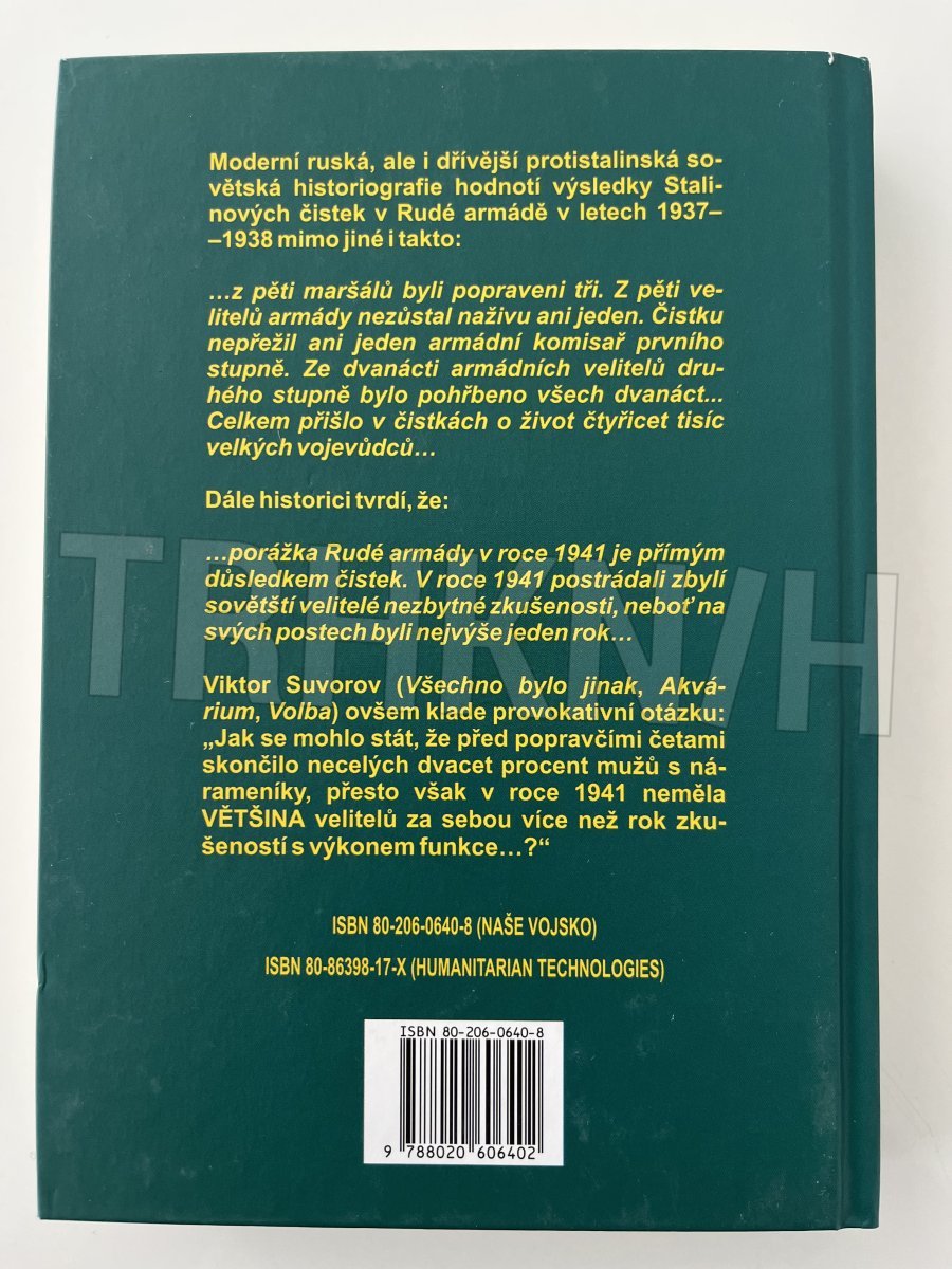 Moderní ruská, ale i dřívější protistalinská sovětská histografie hodnotí výsledky Stalinových čistek v Rudé armádě v letech 1937 - 1938 mimo jiné takto: ... z pěti maršálů byli popraveni tři. Z pěti velitelů armády nezůstal naživu ani jeden. Čistku nepřežil ani jeden armádní komisař prvního stupně. Ze dvanácti armádních velitelů druhého stupně bylo pohřbeno všech dvanáct, ... . Celkem přišlo v čistkách o život čtyřicet tisíc velkých vojevůdců .... Dále historici tvrdí, že: ... porážka Rudé armády v roce 1941 je přímým důsledkem čistek. V roce 1941 postrádali zbylí sovětští velitelé nezbytné skušenosti, neboť na svých místech byli nejvýše jeden rok ... Viktor Suvorov ve svých knihách ovšem klade provokativní otázku: "Jak se mohlo stát, že před popravčími četami skončilo necelých dvacet procent mužů s nárameníky, přesto však v roce 1941 neměla VETŠINA velitelů za sebou více než rok zkušeností s výkonem funkce ...?"