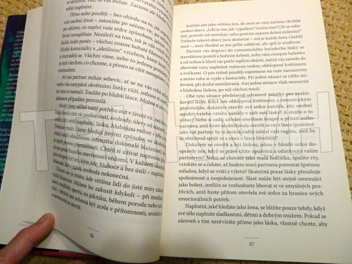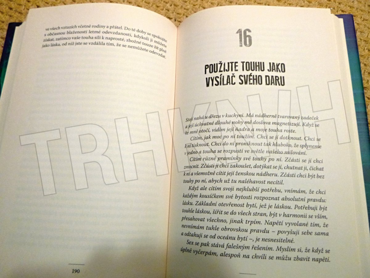 Oblíbený a provokativní autor David Deida ukazuje v knize „Sex jako cesta k Bohu“ posvátný rozměr milování. Naučíte se vědomě pěstovat schopnost otevřenosti a jednoty a sex prožívat tak, aby byl vyjádřením vašeho skutečného já. Vnímali jste sex dosud jenom jako fyzický akt? Pak vězte, že může být uměním, modlitbou a splynutím s nekonečnou láskou – nahou, neohroženou, syrovou a naprosto otevřenou. „Při sexu si dejte pozor, aby se vaše pozornost nezúžila na příliš dlouhou dobu. Je snadné soustředit se na vztyčenou bradavku, šťavnatý polibek nebo rozvášněné genitálie. Je snadné omezit vědomí na to, čemu věnujeme pozornost. Jenomže vědomí, které je vaší nejhlubší pravdou, představuje mnohem víc. Lahodnost sexu vás nemusí rozptylovat od hloubky vašeho bytí...