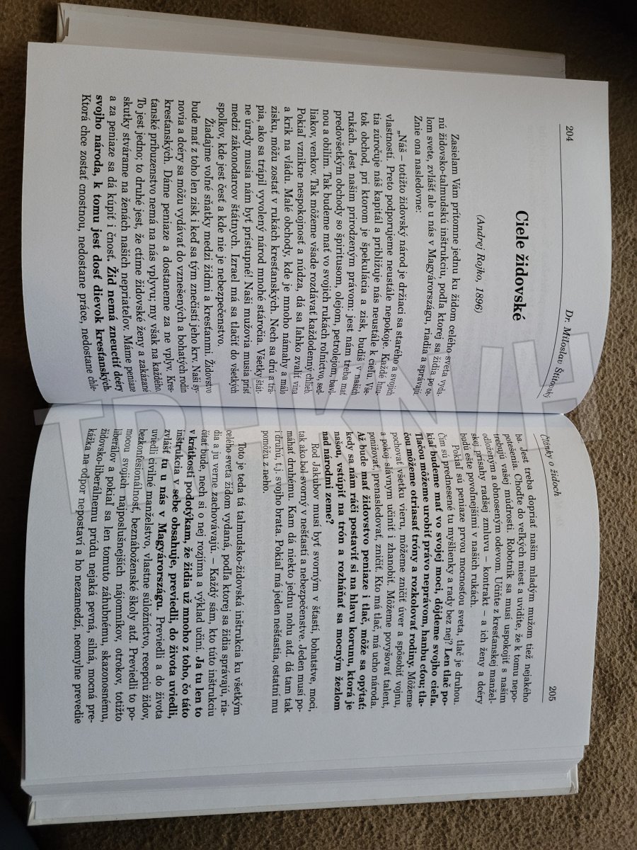 V staršej slovenskej literatúre a publicistike z prelomov 19. a 20. storočia sa možno často stretnúť s vyobrazením žida ako úžerníka, šíriteľa alkoholizmu, či vládcu peňazí a tlače, či ako utlačovateľ slovenského národa. Táto literárna tématika je u nás dlhodobo obchádzaná a nebola dosiaľ spracovaná z dôvodu obáv, aby autor a vydavateľ neboli obvinení z nejakého pochybného antisemitizmu. Kniha skúma toto kritické zobrazenie židov v staršej slovenskej literatury, ale aj v článkách a citátoch niektorých slovenských národných dejateľov.