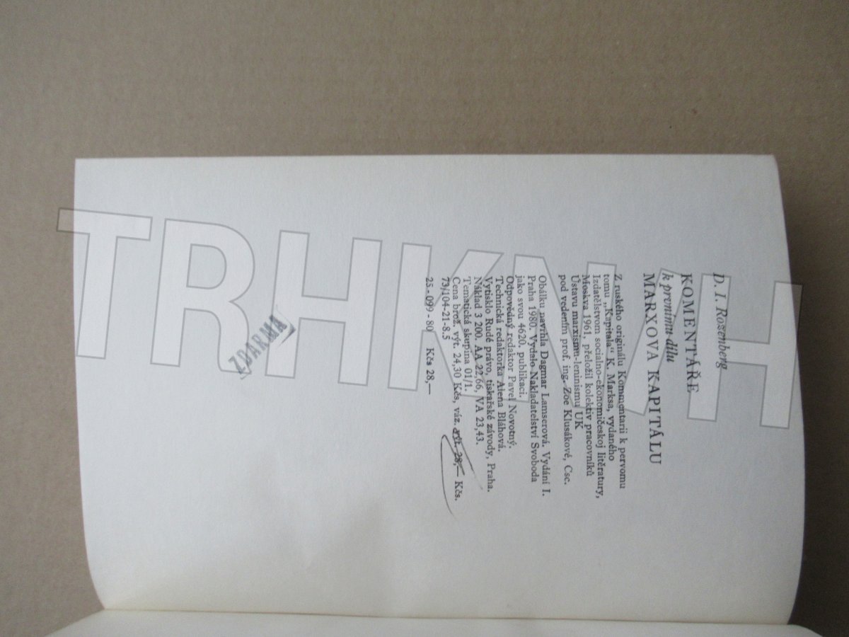 Komentáře k prvnímu dílu Marxova Kapitálu Autor: Rozenberg, David Iochelevič Vydání: 1 Místo vydání: Praha Počet stran: 325 s. Rok vydání: 1980 Vazba: vázaná s obálkou Stav: dobrý Nakladatel: Svoboda Kategorie: Ekonomie Edice, série: kniha Vytvořeno: 202