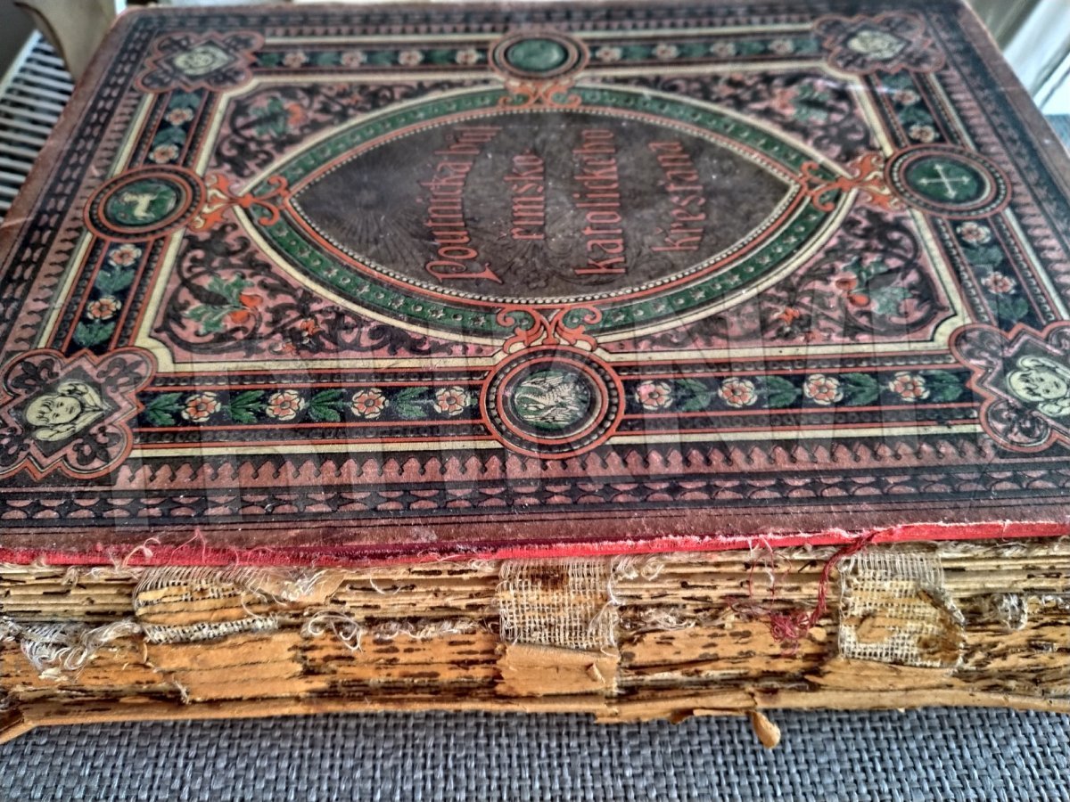 stav: v bídném stavu. Kniha je snad kompletní, ale rozpadající se, uvolněné, na krajích i natržené a zežloutlé listy. chybící hřbet knihy,