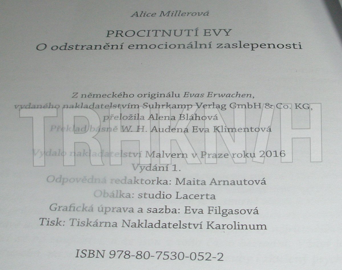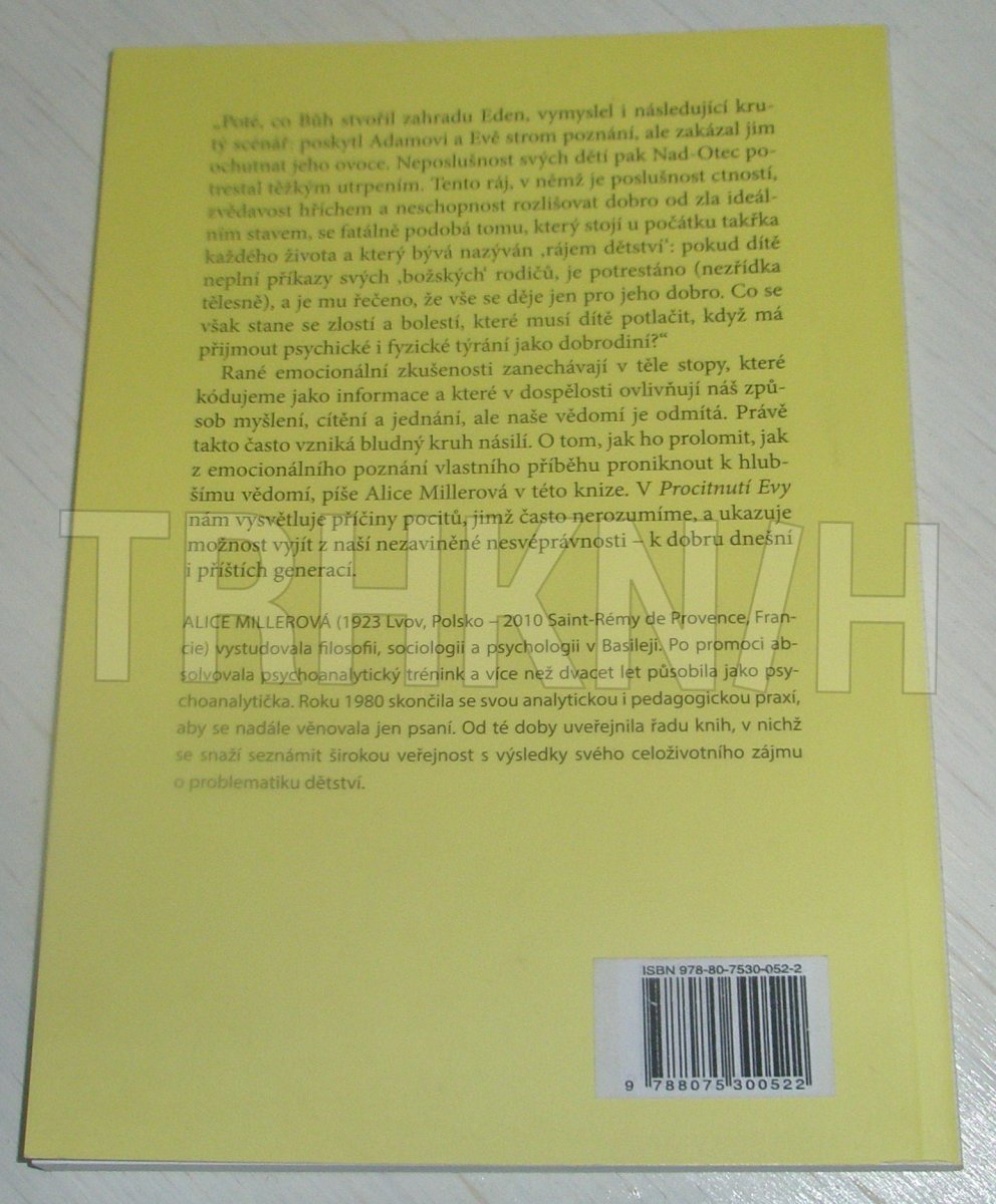 Rané emocionální zkušenosti zanechávají v těle stopy, které kódujeme jako informace a které v dospělosti ovlivňují náš způsob myšlení, cítění a jednání, ale naše vědomí je odmítá. Právě takto často vzniká bludný kruh násilí. O tom, jak ho prolomit, jak z emocionálního poznání vlastního příběhu proniknout k hlubšímu vědomí, píše Alice Millerová v této knize. V Procitnutí Evy nám vysvětluje příčiny pocitů, jimž často nerozumíme, a ukazuje možnost vyjít z naší nezaviněné nesvéprávnosti – k dobru dnešní i příštích generací.
