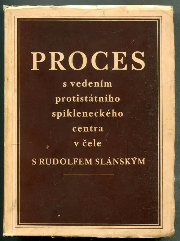 Kniha podává úplný soudní zápis procesu s vedením protistátníhospikleneckého centra, který byl projednáván před senátem stát. soudu v Praze ve dnech 20.-27.11.1952