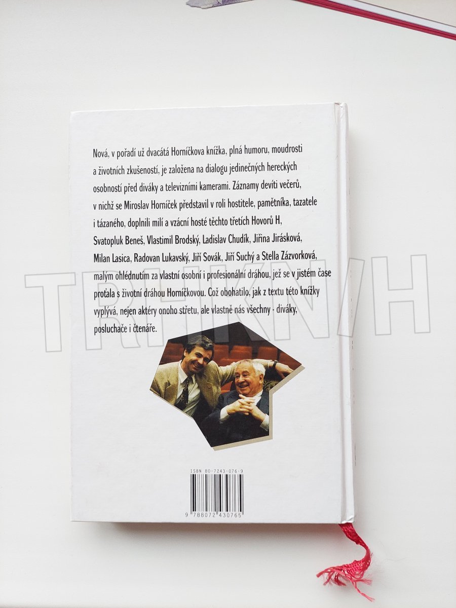 Šest let uplynulo od prvního vydání této knížky a někteří z jejích aktérů už bohužel nejsou mezi námi. Autentický záznam devíti večerních dialogů M. Horníčka s milými kolegy a kolegyněmi před zvídavým publikem a TV kamerami se tak stal cenným svědectvím o neopakovatelných setkáních. Laskavý humor, moudrost, profesionální i osobní zážitky oblíbených hereckých osobností i jejich životní vyznání napsané speciálně pro tuto knížku potěší nejen pamětníky.
