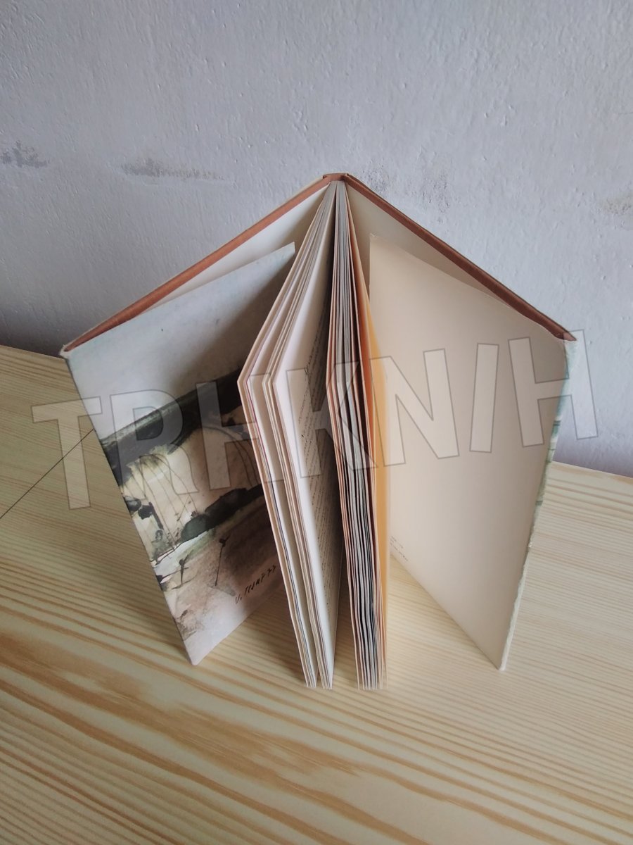 přebal je celý ale v hranách je trochu odřený a na rubu /přebalu / má dva světle hnědé fleky od tekutiny,tento otisk je i na zadní desce knihy plus tam jsou dvě mikrotečky,jinak je kniha moc pěkná,tisk je na výkresovém papíře,