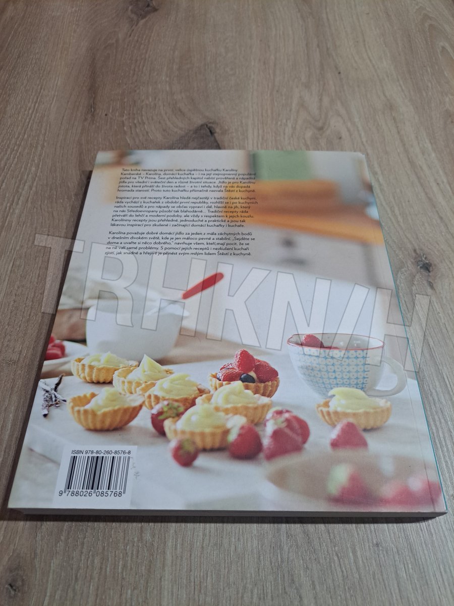 Tato kniha navazuje na první, velice úspěšnou, kuchařku Karolíny Kamberské - Karolína, domácí kuchařka - i na její stejnojmenný populární pořad na TV Prima. Šest přehledných kapitol nabízí prověřená a nápaditá jídla pro všední i sváteční den a různé životní situace. Jídlo je pro Karolínu jistotou, která přináší do života radost - a to i tehdy, když na vás jinak dopadá hromada starostí. Proto tuto kuchařku nazvala příznačně Štěstí z kuchyně. Inspiraci pro své recepty Karolína hledá nejčastěji v tradiční české kuchyni, ráda vychází z kuchařek z období první republiky, rozhlíží se ale i po kuchyních našich sousedů a pro nápady se občas vypraví i dál, hlavně na jih, který na nás středoevropany působí tak blahodárně... Tradiční recepty ráda přetváří do lehčí a moderní podoby, ale vždy s respektem k jejich kouzlu. Karolíniny recepty jsou přehledné, jednoduché a praktické a jsou tak lákavou inspirací pro zkušené i začínající domácí kuchařky i kuchaře. Karolína považuje dobré domácí jídlo za jeden z mála záchytných bodů v dnešním divokém světě, kde je jen máloco pevné a stabilní. “Sejděte se doma a uvařte si něco dobrého”, navrhuje všem, kteří mají pocit, že se na ně valí samé problémy. S pomocí jejích receptů i nezkušení kuchaři zjistí, jak snadné a hřejivé je přinést svým milým lidem Štěstí z kuchyně.