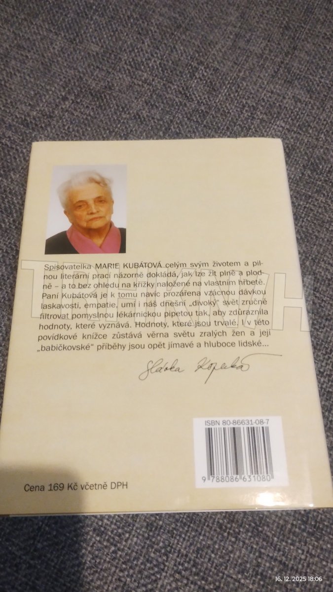 Tuto povídkovou knížku by autorka ráda položila na noční stolek starým paním, kterým uletělo spaní... Babičky nejsou v samotě samy: bdí s nimi jejich paměť. Mají ve své hlavě paměťové klubíčko - a z něj se odvíjí život jako natočený film. Strop nad lůžkem je promítací plátno a na něm se přibližují tváře vzdálené a vracejí se i tváře přes práh času.