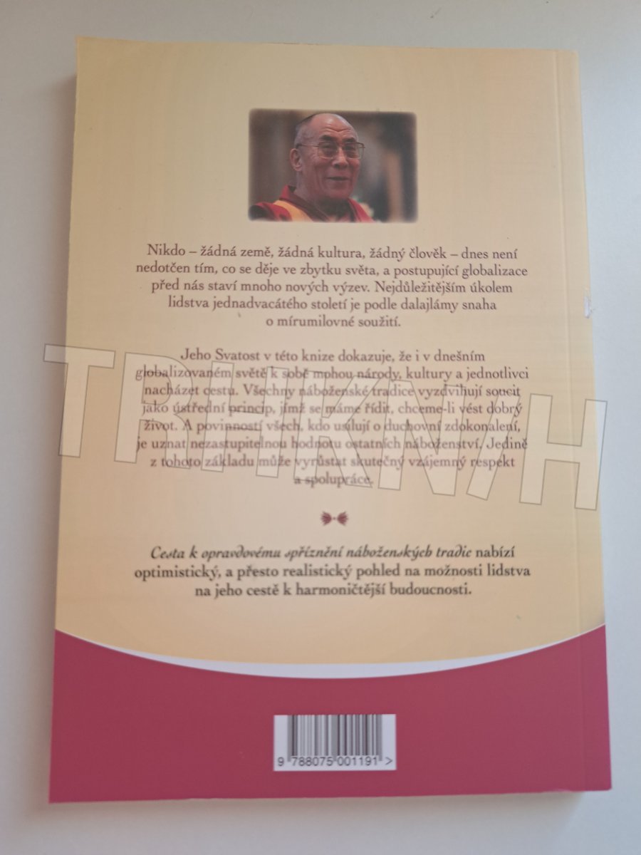 Nikdo – žádná země, žádná kultura, žádný člověk – dnes není nedotčen tím, co se děje ve zbytku světa, a postupující globalizace před nás staví mnoho nových výzev. Nejdůležitějším úkolem lidstva jednadvacátého století je podle dalajlámy snaha o mírumilovné soužití. Jeho Svatost v této knize dokazuje, že i v dnešním globalizovaném světě k sobě mohou národy, kultury a jednotlivci nacházet cestu. Všechny náboženské tradice vyzdvihují soucit jako ústřední princip, jímž se máme řídit, chceme-li vést dobrý život. A povinností všech, kdo usilují o duchovní zdokonalení, je uznat nezastupitelnou hodnotu ostatních náboženství. Jedině z tohoto základu může vyrůstat skutečný vzájemný respekt a spolupráce. Cesta k opravdovému spříznění náboženských tradic nabízí optimistický, a přesto realistický pohled na možnosti lidstva na jeho cestě k harmoničtější budoucnosti.
